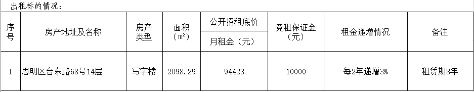 思明區(qū)臺東路68號14層房產(chǎn)公開招租公告