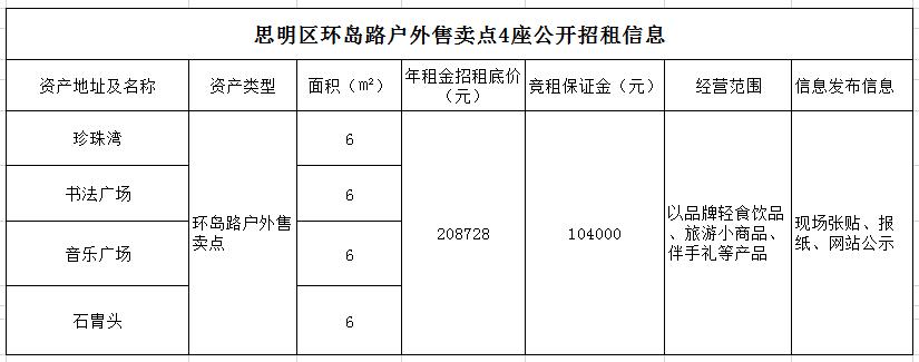 思明區(qū)環(huán)島路戶外售賣點4座公開招租公告