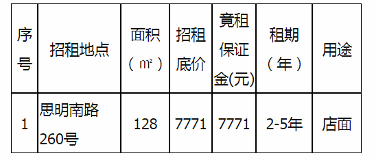 備注:意向承租人對上述情況應有充分了解。詳細招租規(guī)則、房屋租賃合同樣本、承諾函、報價單等招租文件于報名參加時領取。